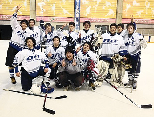 大学時代のアイスホッケー部の練習で。前列左から2番目が中池さん