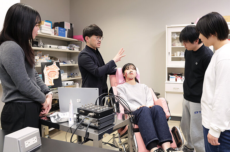 2024年には、研究室の学生が呼吸や嚥下のトレーニングのできる吹き戻しゲームを企業と連携して開発。社会とつながることを意識した教育を展開しています。