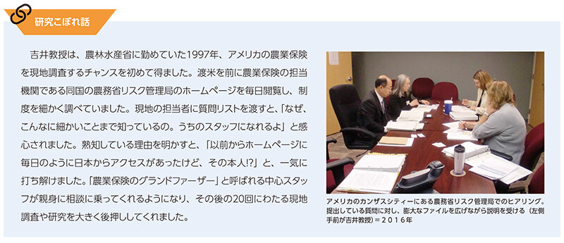 私の専門は農業経営におけるリスクを適切に管理する「セーフティーネット政策」に関する研究です。国内外で農業者や農業団体、関連企業、行政機関などへのインタビューを重ね、海外の政策や制度の分析を進めて政策の立案に役立ててもらえるよう情報を発信しています。特に、公的な保険制度である「農業保険」に焦点を当てて研究を進めています。