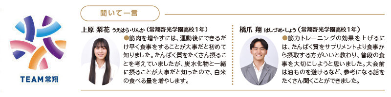 橋爪:やり投げで肩を痛めることがあります。けがを防ぐために筋肉を増やしたいのですが、どんな食べ物がいいですか?